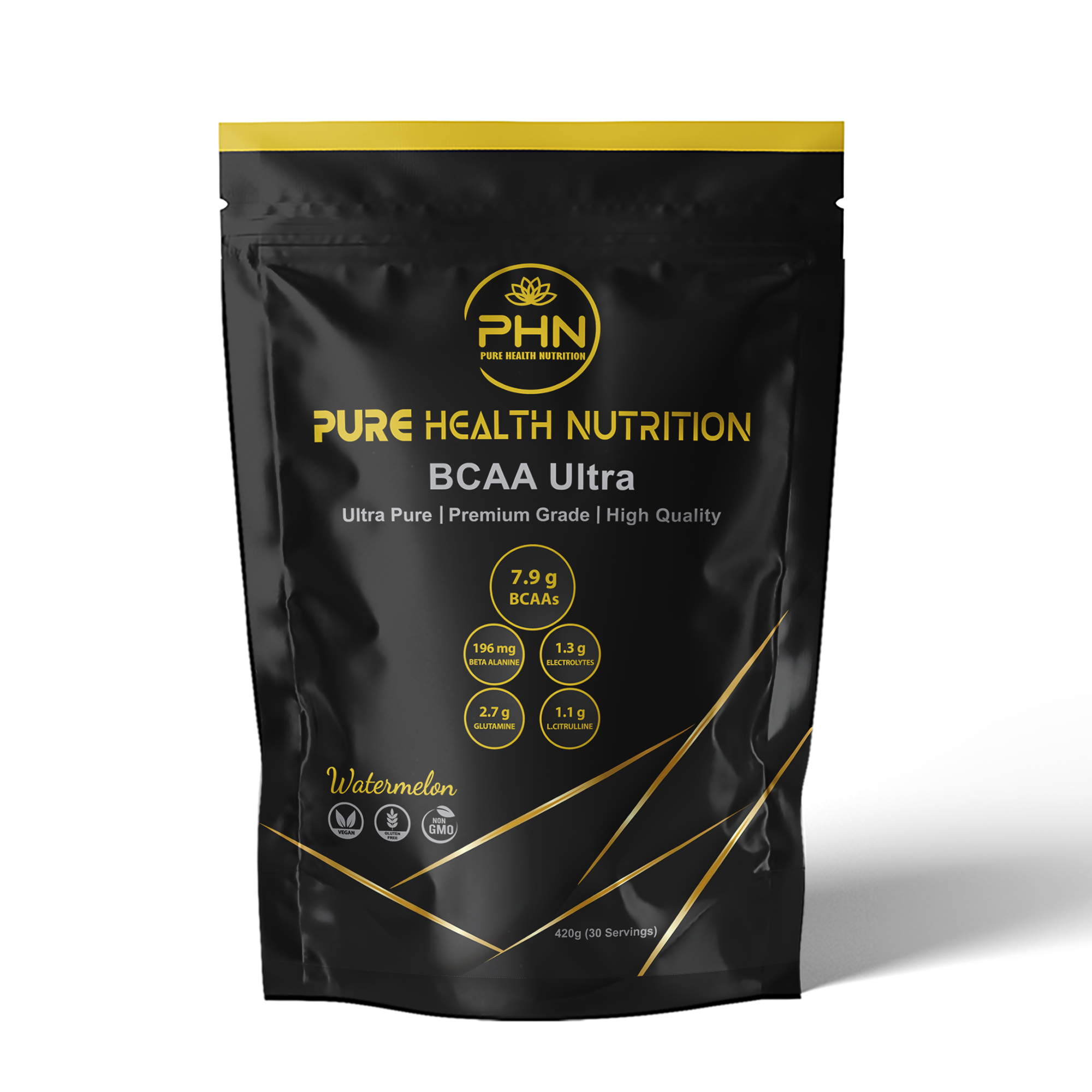 BCAA Ultra from Pure Health Nutrition contains the highest quality essential amino acids; Leucine, Isoleucine and Valine in optimal ratios to enhance performance, boost muscle growth and reduce fatigue. It also contains Glutamine and Electrolytes to aid with recovery and Beta Alanine, Vitamin 86 and Citrulline Malate to increase energy and nitric oxide production. BCAA Ultra is a complete powerhouse of performance and is a must have product for beginners and athletes both.